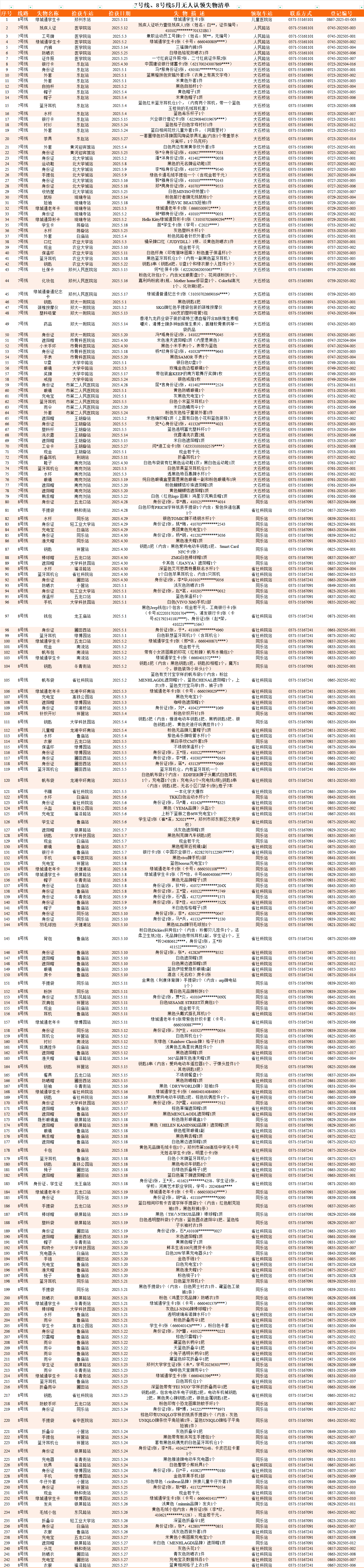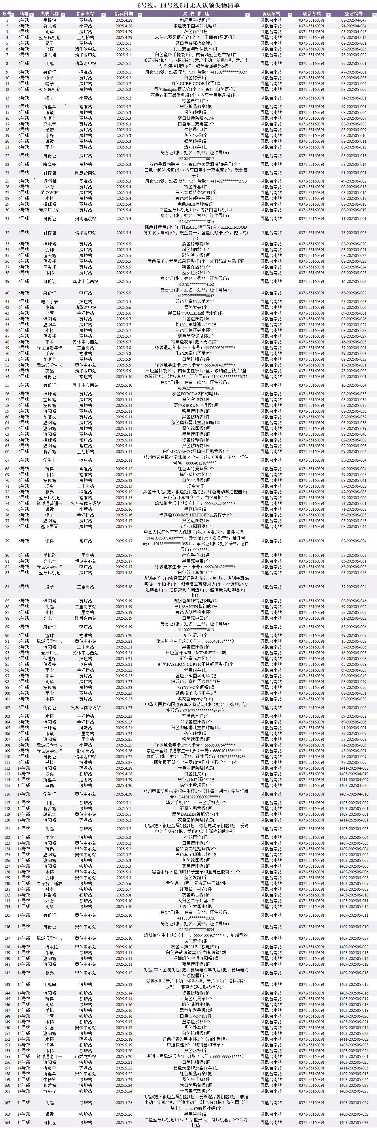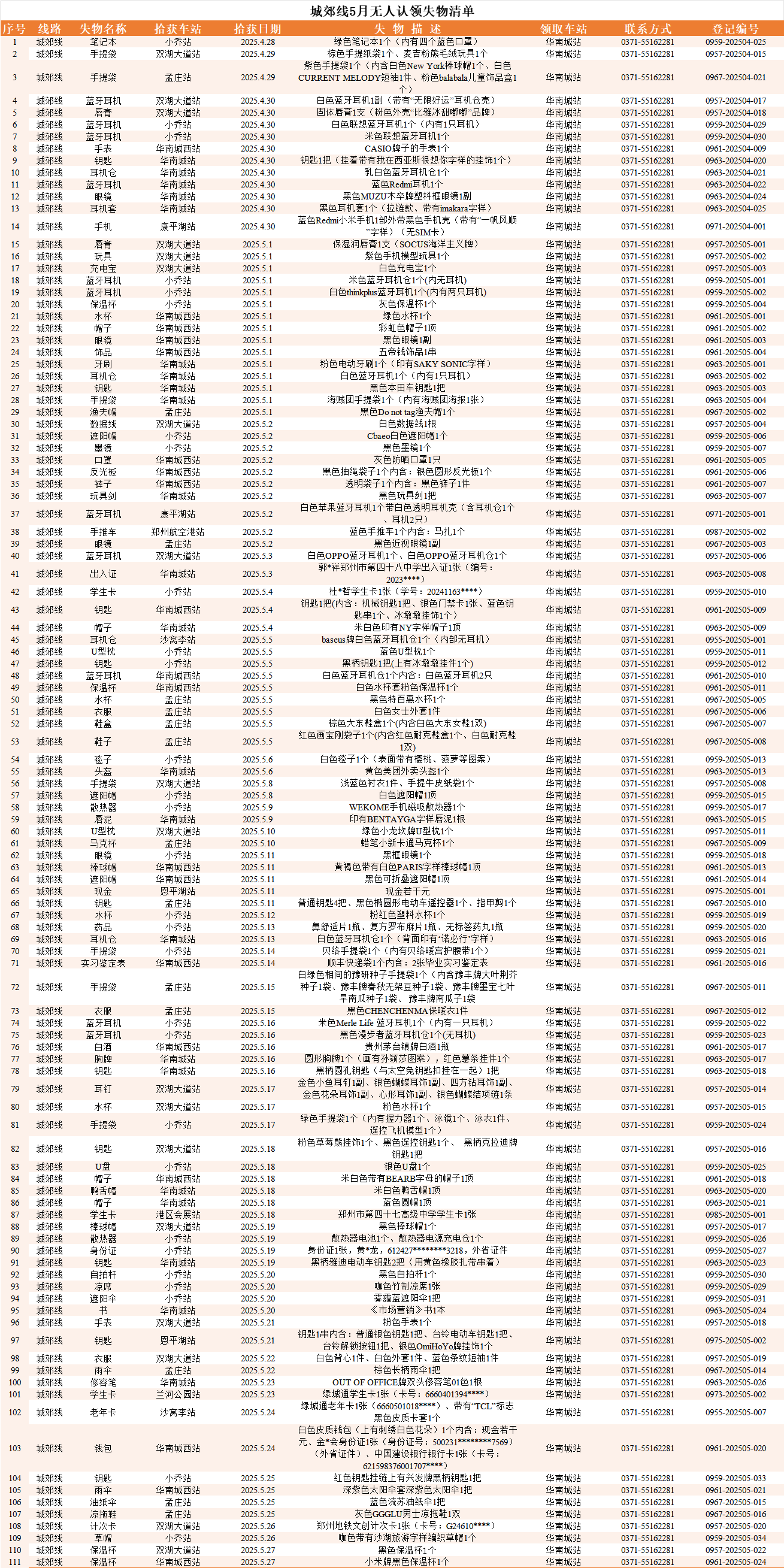 2025年4月28日—2025年5月28日車站無人認領(lǐng)失物情況